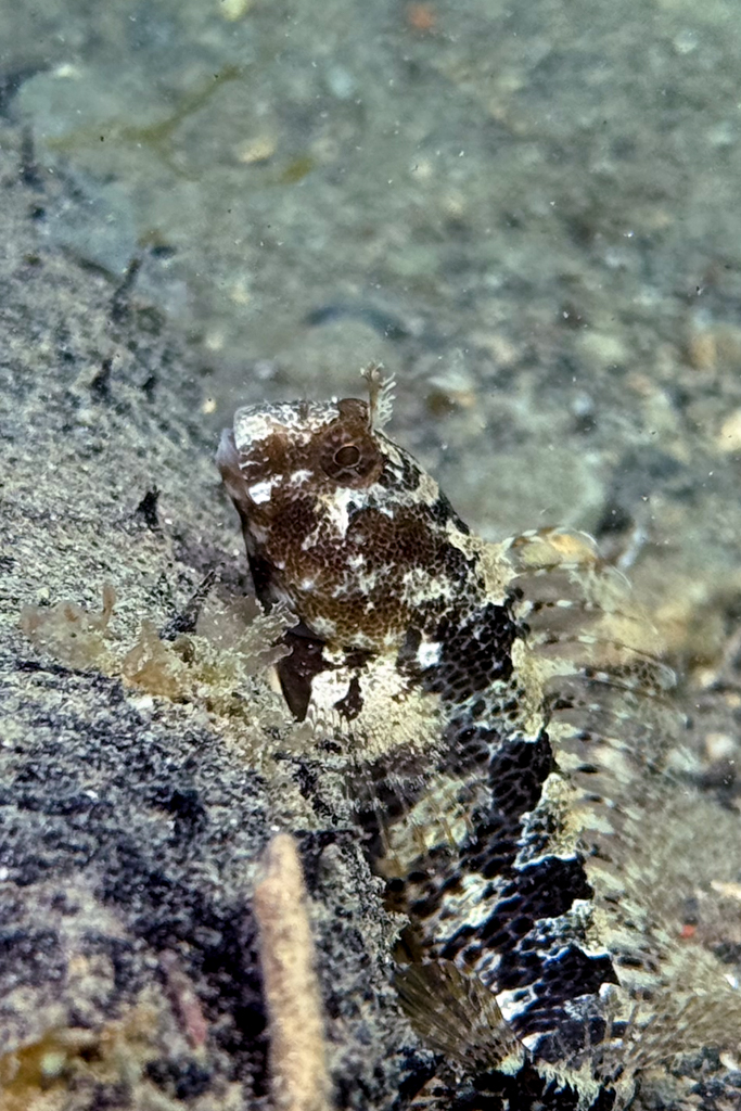 Vsi skupaj smo naredili potop ob 9:00 na lokaciji Brojenca. Ko se potopim, ugotovim, da bo tole ena sama jeba. Vidljivost katastrofa in prazno morsko dno. Vem, da imajo vsi tekmovalci iste pogoje, a vseeno, za vse je bilo težko. Najti zanimiv motiv, ga pravilno osvetliti in tako dalje. Pred nekaj dnevi sem nadgradil Divevolk ohišje s primernimi držali, kot tudi z novo podvodno lučjo. Zato je bil to sploh prvi potop s celotnim setom. No ni mi delal težav, saj sem podobno konfiguracijo že uporabljal na Olympus TG5, ki ga je lansko leto odneslo med potopom v toku.