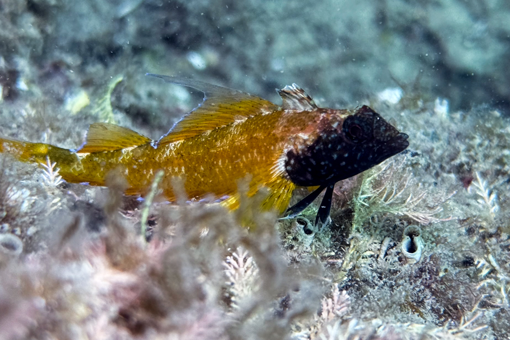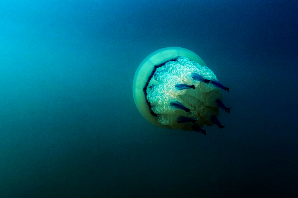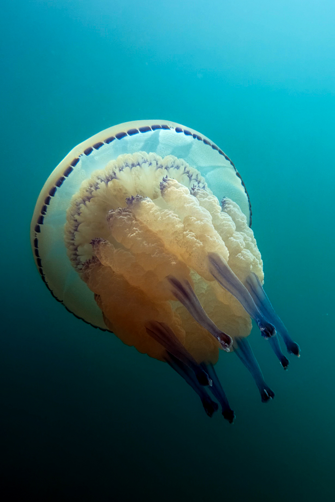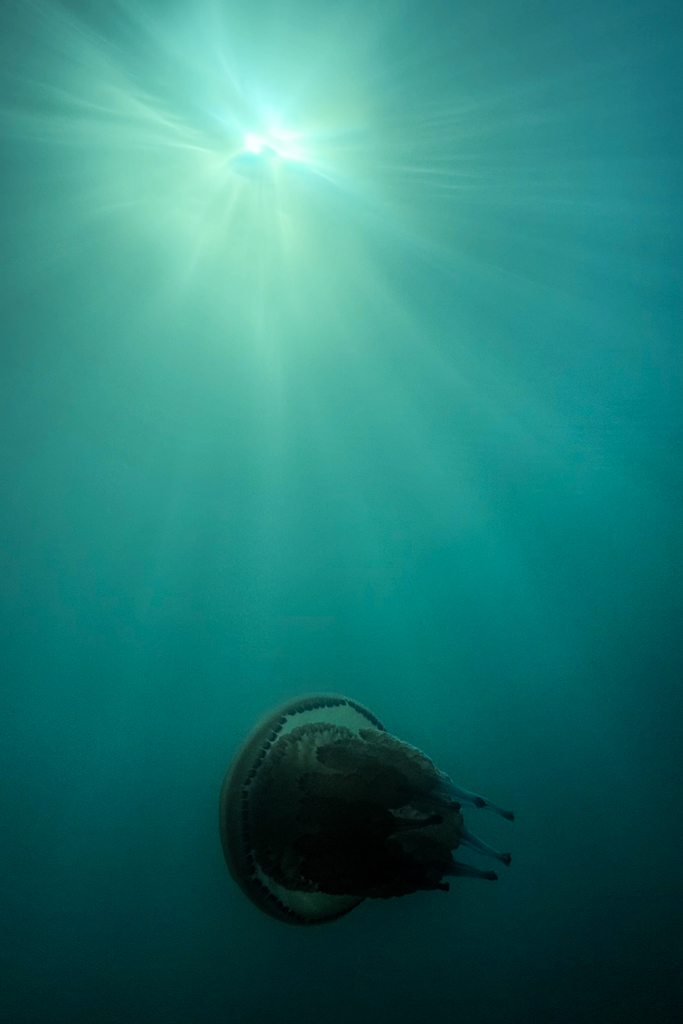 Na začetku je kazalo prekleto slabo. Ampak iz zgodovine, kjer sem slikal reportažno s DSLR Canon 7, sem imel v glavi vedno idejo, da brez fotk ne smeš priti domov. Isto sem si rekel na tekmovanju. Plaval sem uro in pol, nekako pravih motivov res ni bilo. Najlepši se mi je zdel klobučnjak, ki je kar priplaval od nekje 😉 Videl sem ga v slabi vidljivosti in kot sem videl kasneje, sem bil skoraj edini.