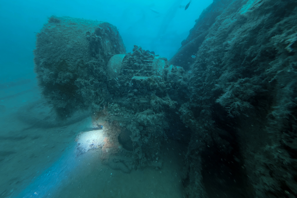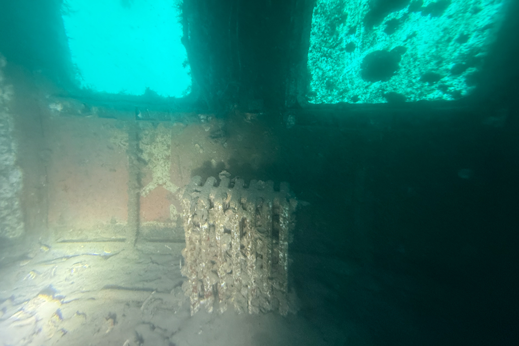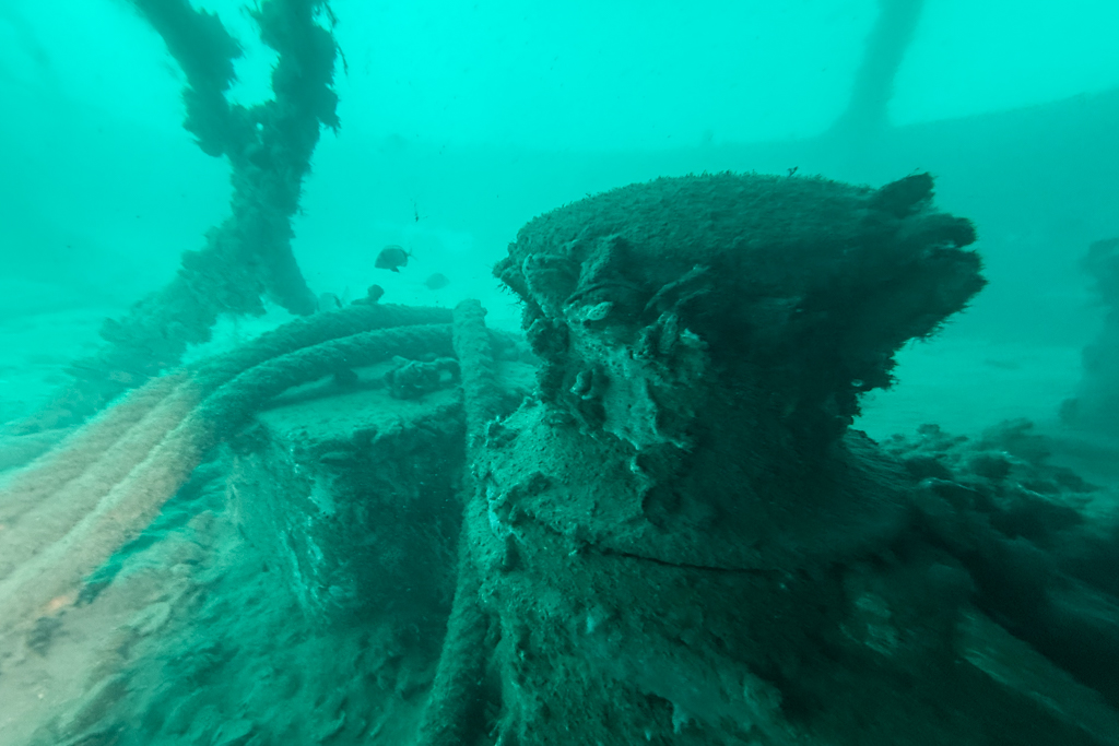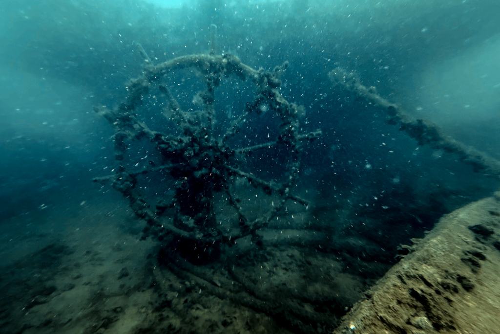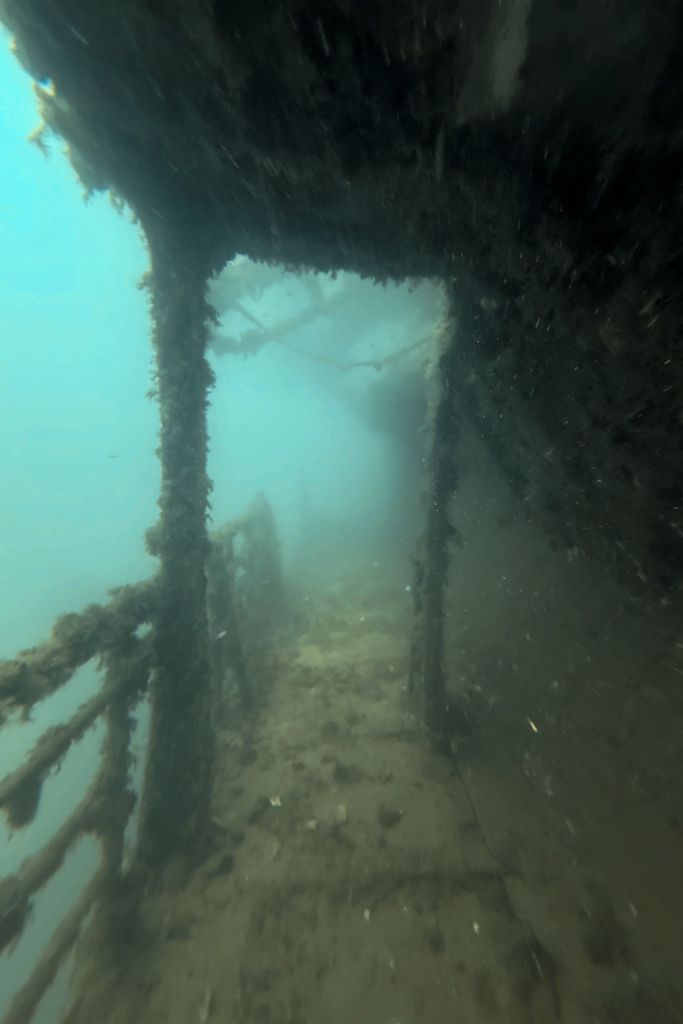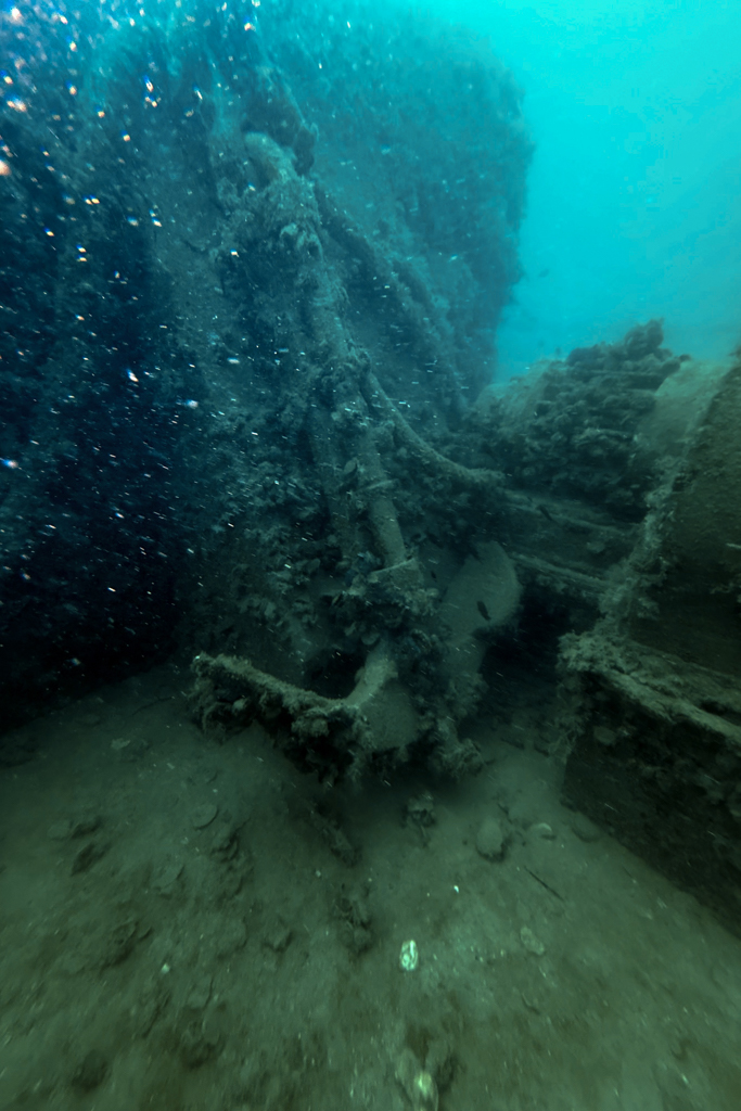 Spodnja paluba skriva tisto znano kapitanovo krmilo na krmi ladje. Fotogeničen objekt na wrecku. Wreck dodobra izdeluje sol, kot tudi podvodni tokovi, saj se vidi, da počasi razpada. S skutrom se zapeljem naokrog in seveda vidim precej zanimivih objektov na poti. Nastala je super galerija, ki je objavljena zgoraj!