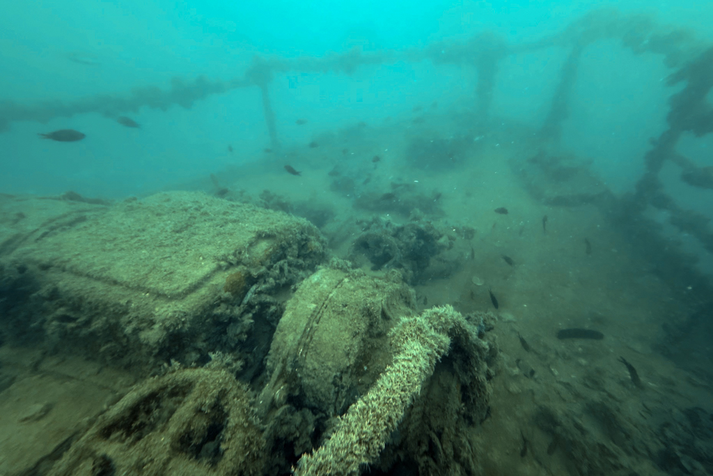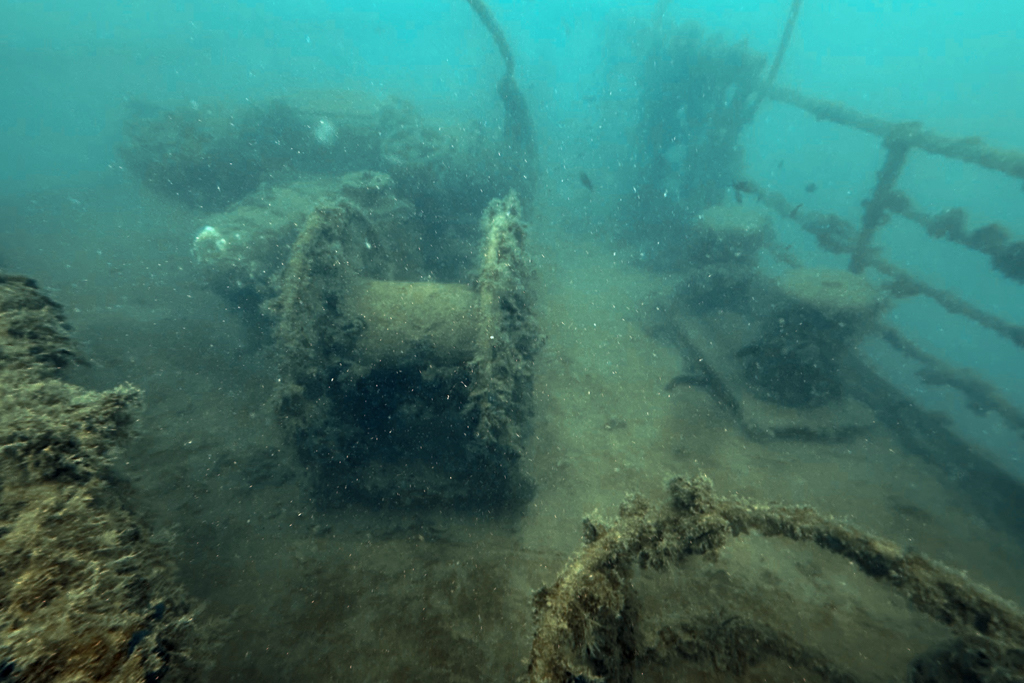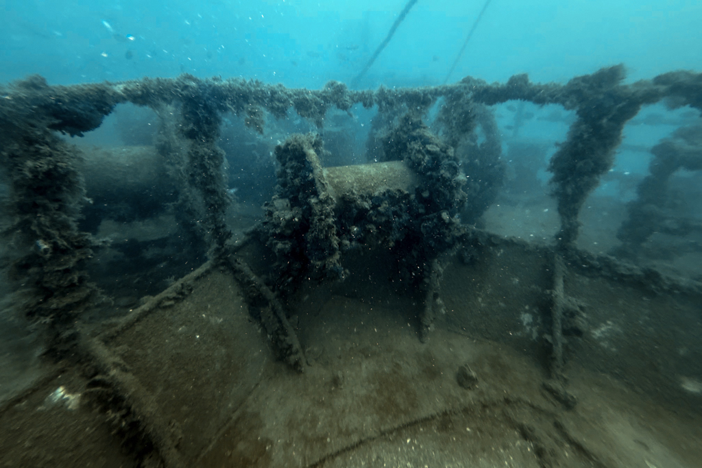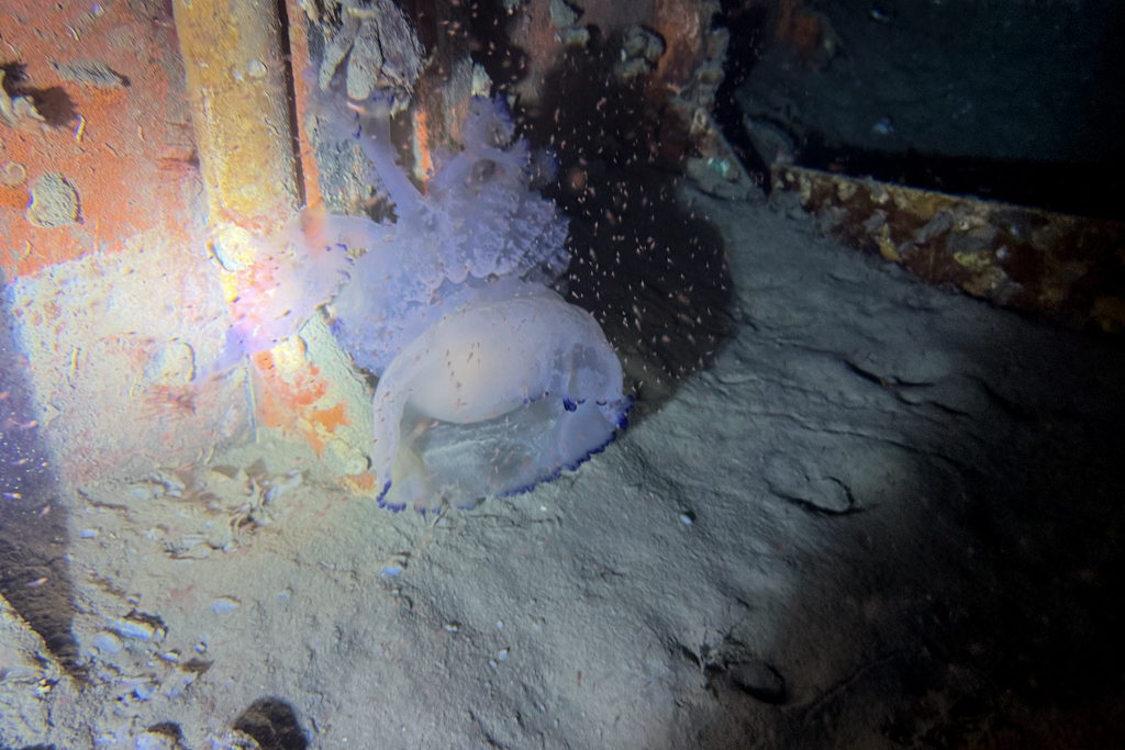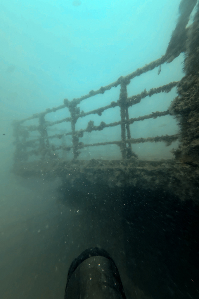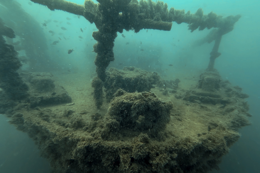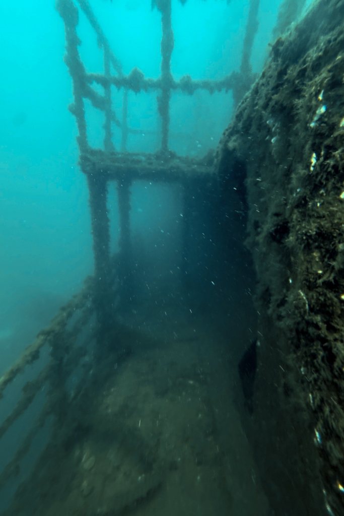 Spodnja paluba skriva tisto znano kapitanovo krmilo na krmi ladje. Fotogeničen objekt na wrecku. Wreck dodobra izdeluje sol, kot tudi podvodni tokovi, saj se vidi, da počasi razpada. S skutrom se zapeljem naokrog in seveda vidim precej zanimivih objektov na poti. Nastala je super galerija, ki je objavljena zgoraj!