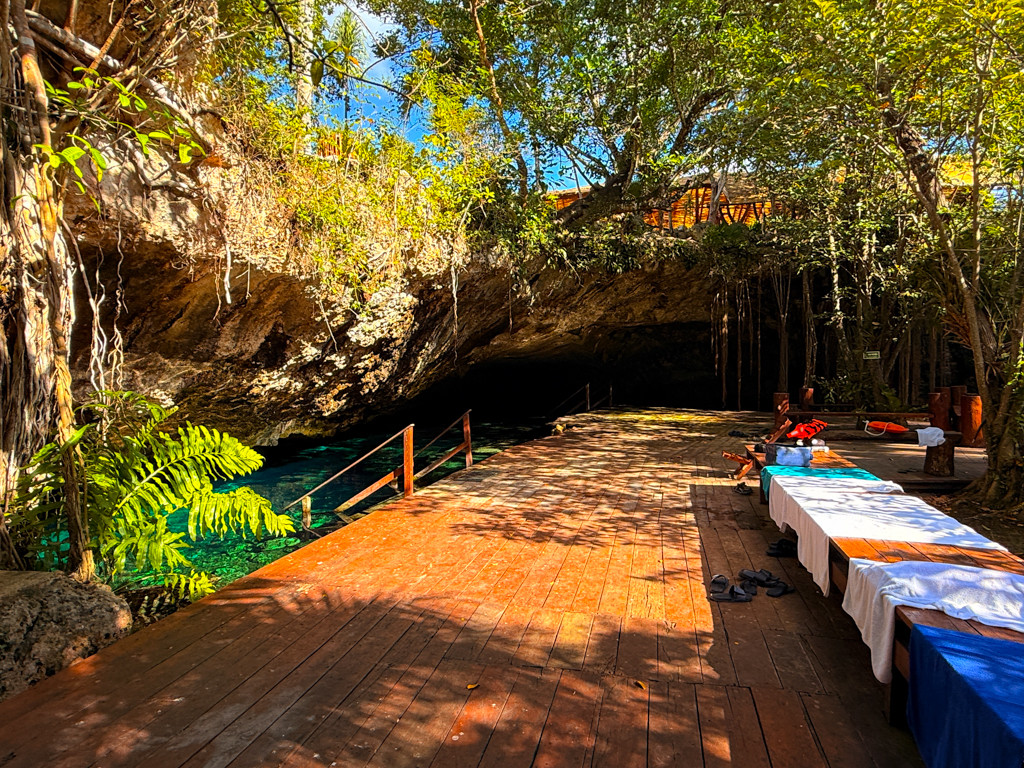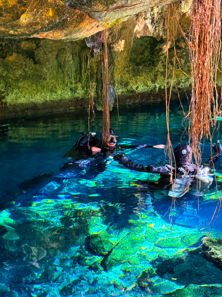Dobiva se pred jamo, kjer je že mrgolelo potapljačev. Ravno sem se zaklepetal z dvema Špankama, ki sta tisto jutro bili na Cavern tečaju. Le-ta je tako popularen, kot pri nas npr. Prva podvodna izkušnja na Bledu. Potapljačev je bilo za cel tovornjak, se razume to je glavni € dohodek za marsikaterega inštruktorja tukaj. Kot bi rekel Simon iz Škofje Loke: “Repnik jima bo sigurno začel prodajat jamski tečaj v Sloveniji!” Sedi pet Simon.