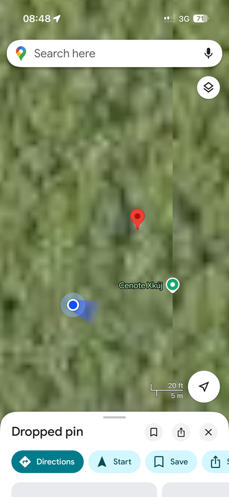 7:00 se zbudim. Prljaga, še vedno nič novega na obzorju. Zajtrk, tavhcenter po 4x 11.1L alu in gas v najdolj oddaljeno jamo letos, ki sem jo splaniral v Tulumu. Cca pol ure vožnje, proti znani cesti do Bakalar. Kakor sem vedel od prej tu ni intereneta. Zatorej že dlje časa uporabljam na Iphone v Mehiki offline navigacijo MAPS.ME. Sama navigacija je zadovoljiva, da prideš do lokacije same, saj zna uvozit žebljičke od google.maps.