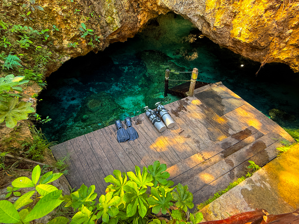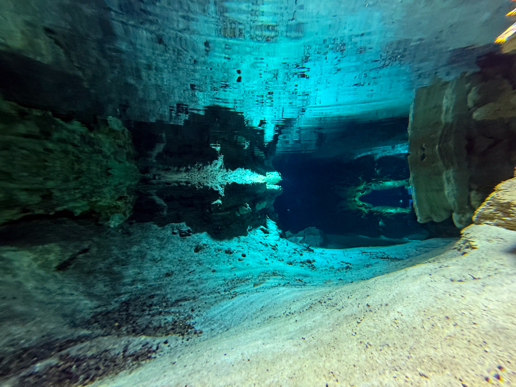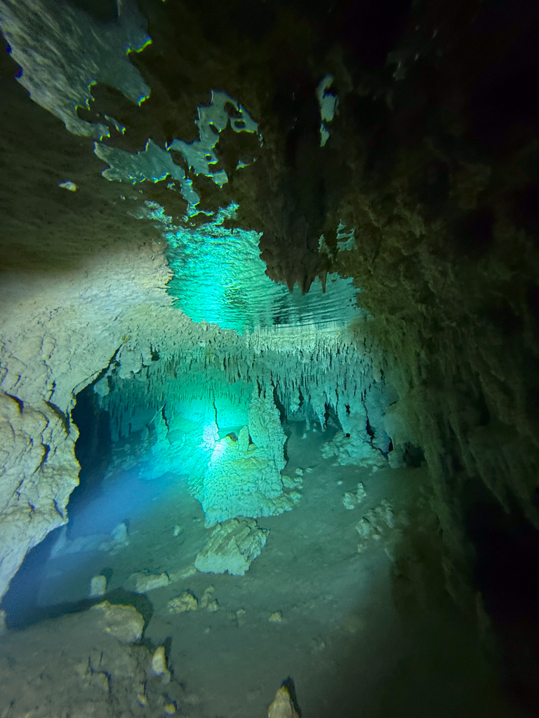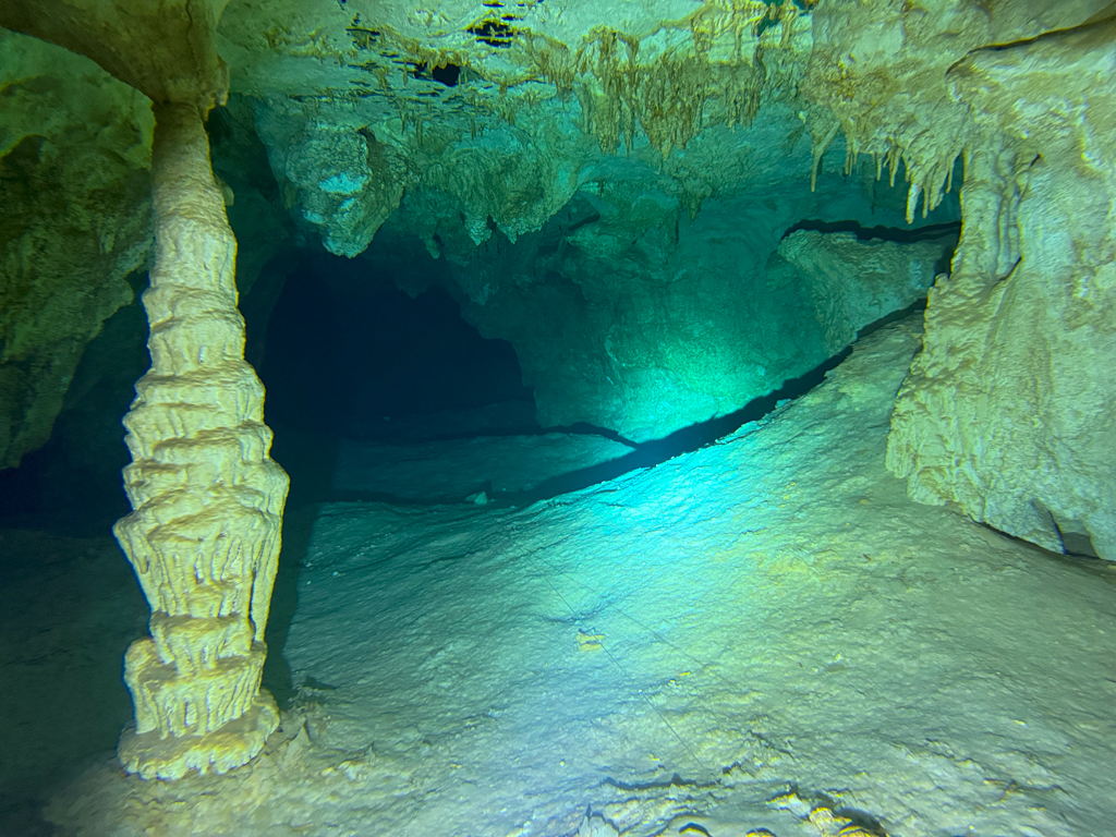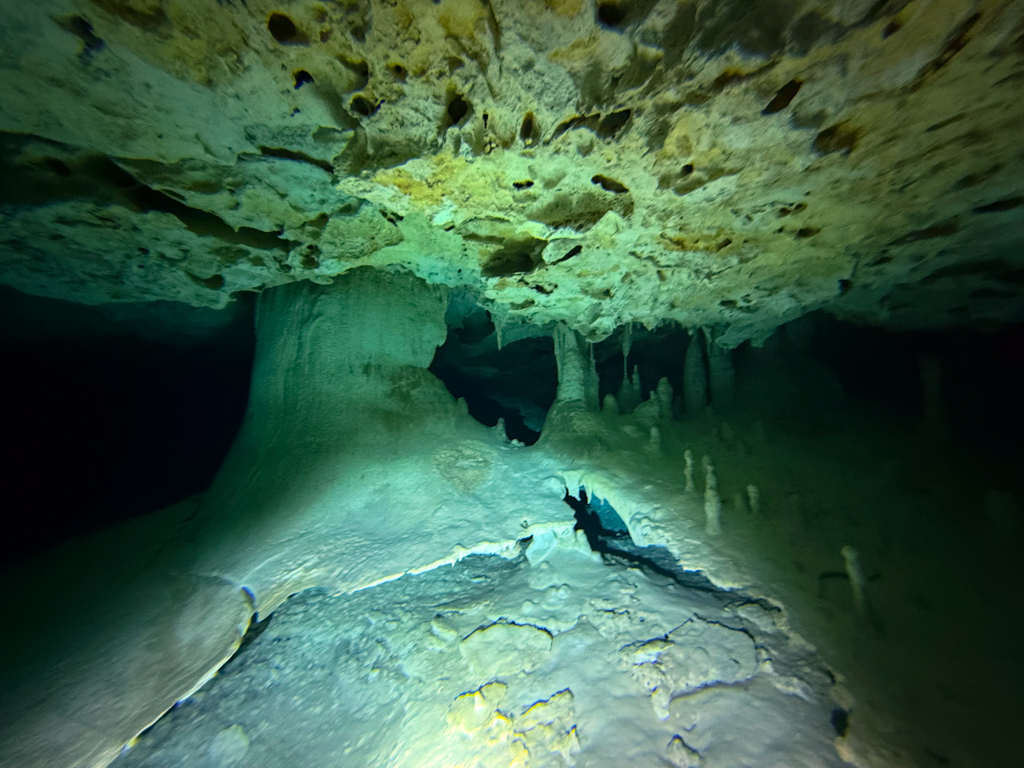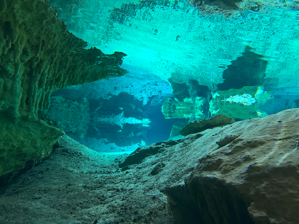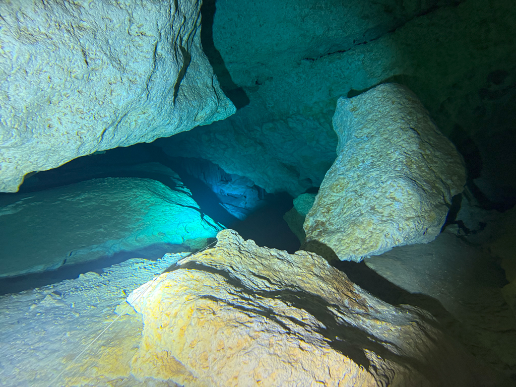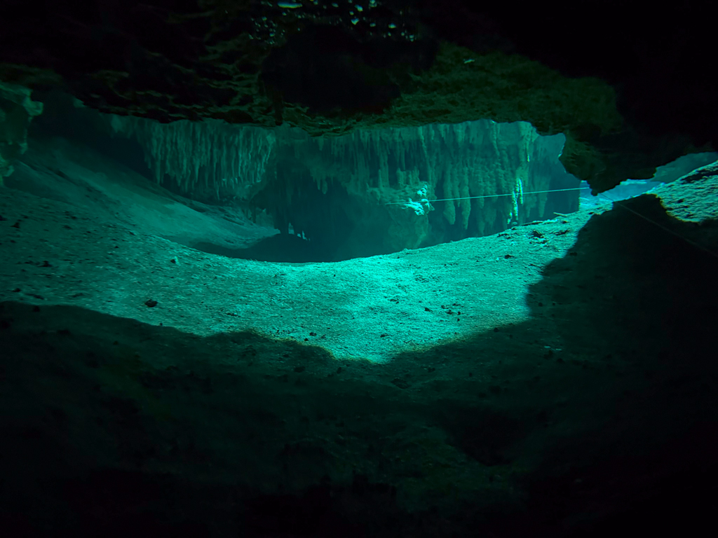 Letos prvih 10 potopov za menoj. Danes je bila na vrsti nova jama, ki je imela že vhod pompozen, bi rekel tisti pravi snorklarski, za familije z malimi otroki. Pred dnevi sem se v potapljaški online komunity pogovarjal ravno o tej jami. Zanimivo, da je v Mehiki ta komunity precej “močan”. Načeloma se kaj hitro lahko tudi dogovoriš za tauch budija, in teh je precej, še sploh deklet. Iz celega sveta jasno. No dali so mi samo eno informacijo: TR and than TL, kar pomeni T desno in potem naslednji T levo.