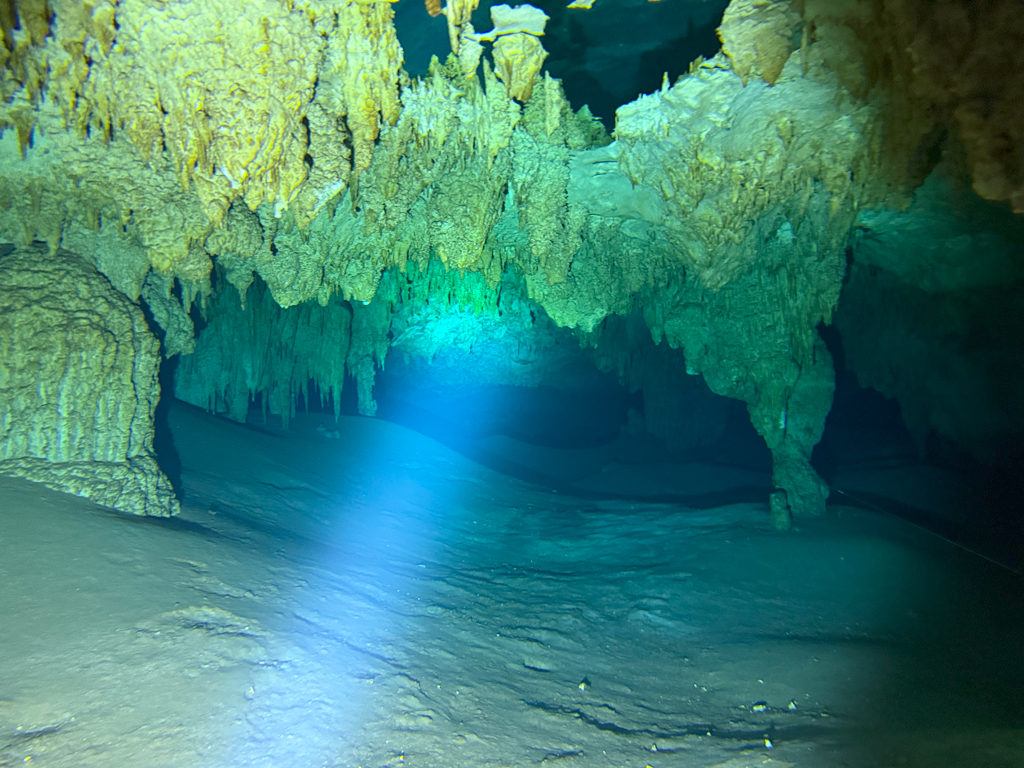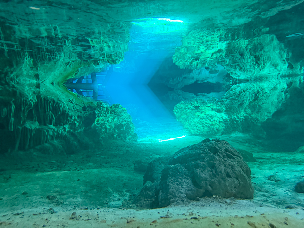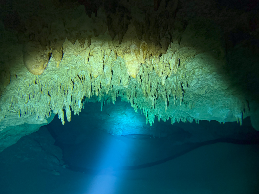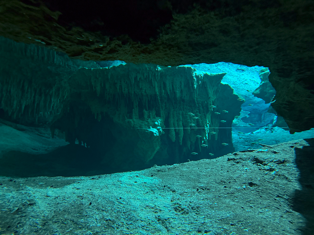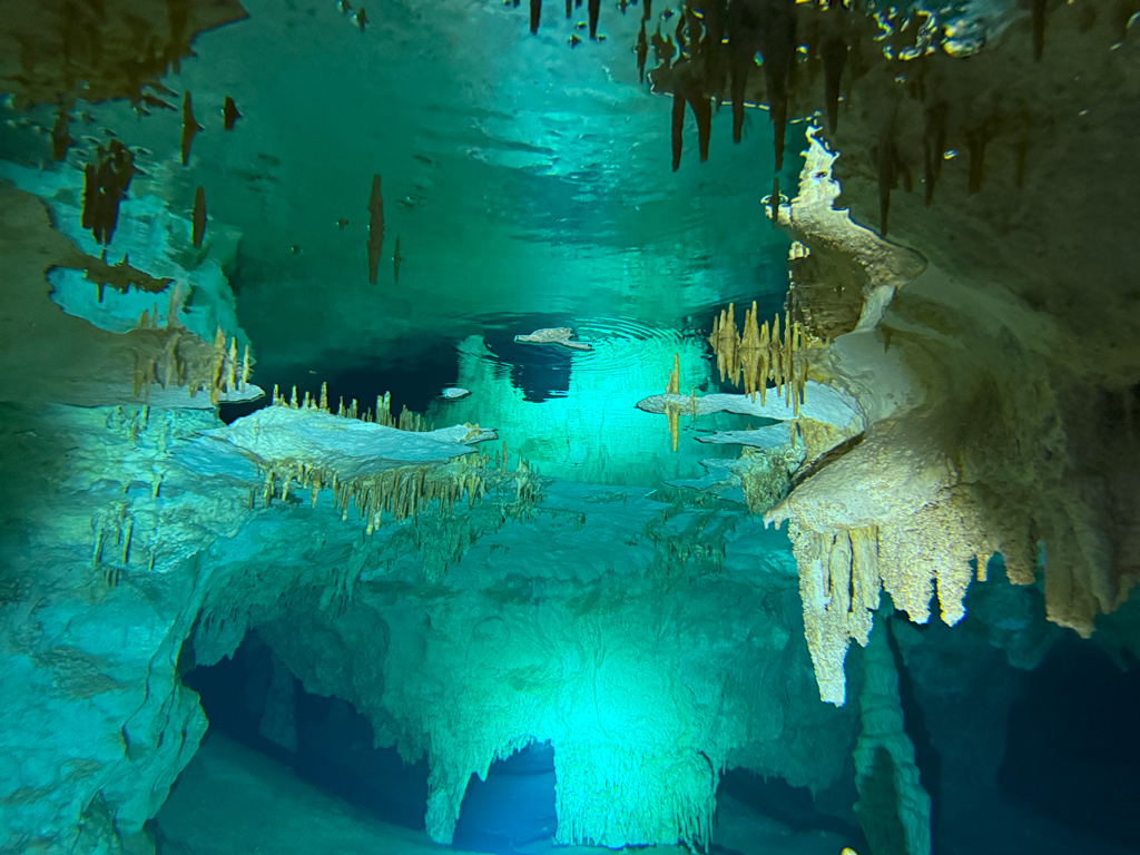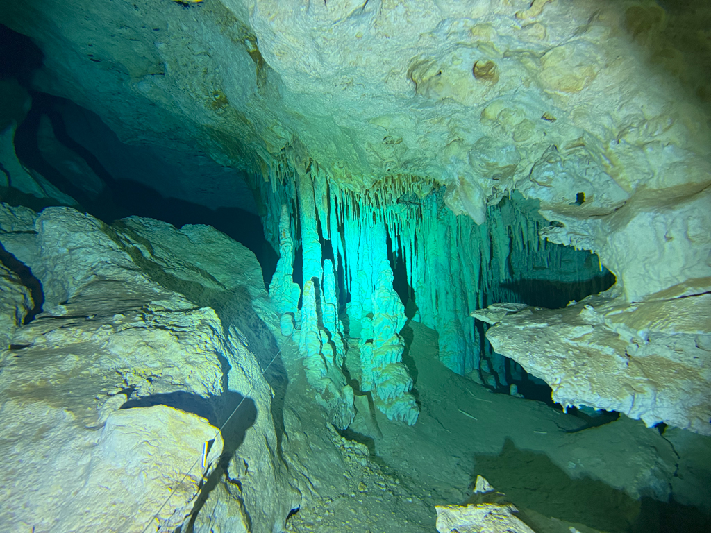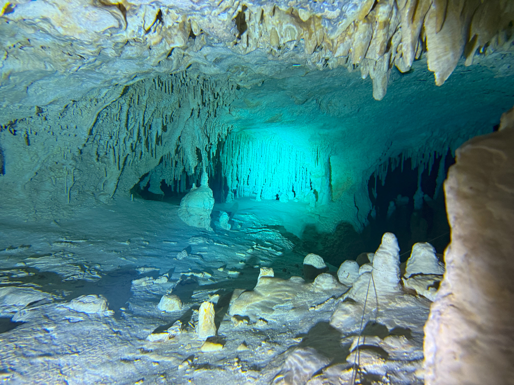 Letos prvih 10 potopov za menoj. Danes je bila na vrsti nova jama, ki je imela že vhod pompozen, bi rekel tisti pravi snorklarski, za familije z malimi otroki. Pred dnevi sem se v potapljaški online komunity pogovarjal ravno o tej jami. Zanimivo, da je v Mehiki ta komunity precej “močan”. Načeloma se kaj hitro lahko tudi dogovoriš za tauch budija, in teh je precej, še sploh deklet. Iz celega sveta jasno. No dali so mi samo eno informacijo: TR and than TL, kar pomeni T desno in potem naslednji T levo.