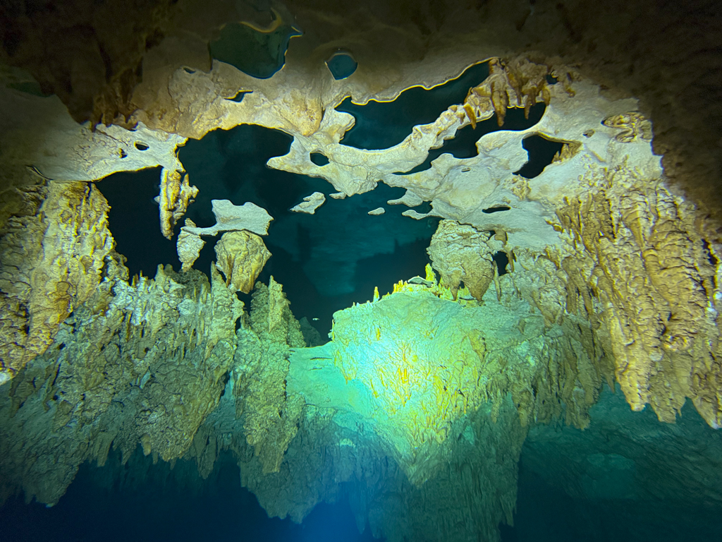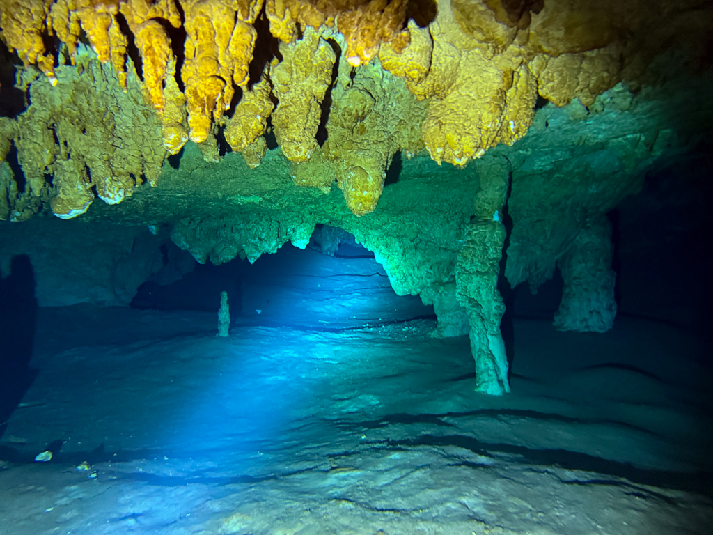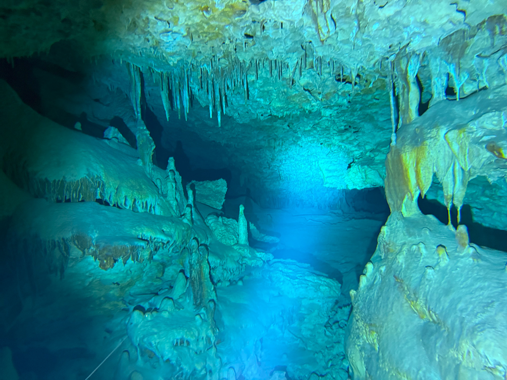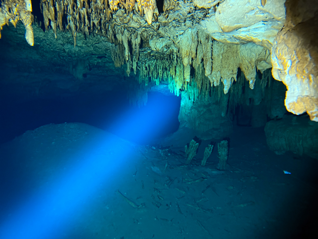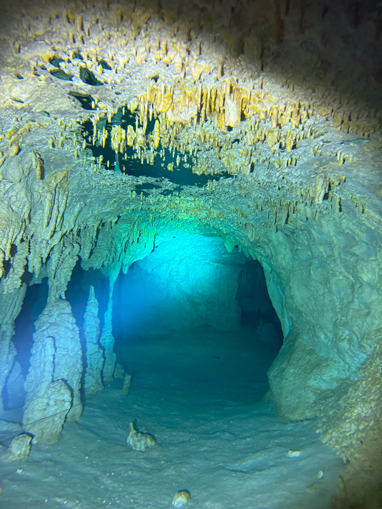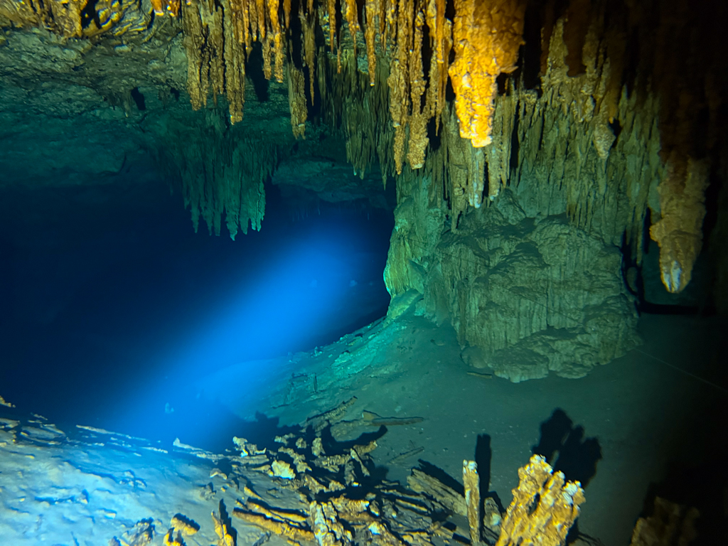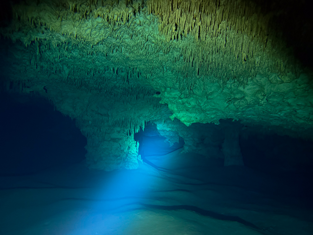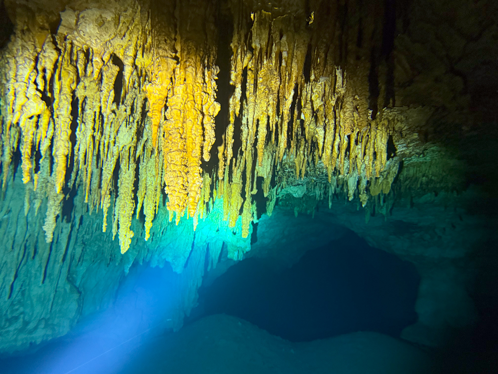 Letos prvih 10 potopov za menoj. Danes je bila na vrsti nova jama, ki je imela že vhod pompozen, bi rekel tisti pravi snorklarski, za familije z malimi otroki. Pred dnevi sem se v potapljaški online komunity pogovarjal ravno o tej jami. Zanimivo, da je v Mehiki ta komunity precej “močan”. Načeloma se kaj hitro lahko tudi dogovoriš za tauch budija, in teh je precej, še sploh deklet. Iz celega sveta jasno. No dali so mi samo eno informacijo: TR and than TL, kar pomeni T desno in potem naslednji T levo.