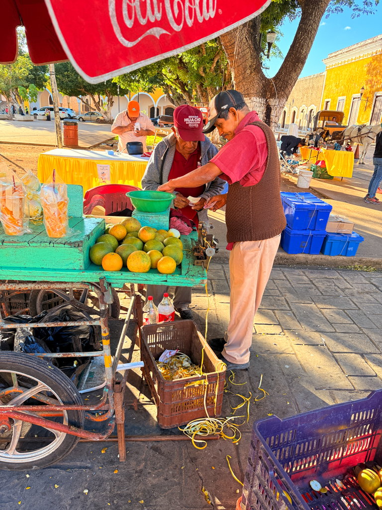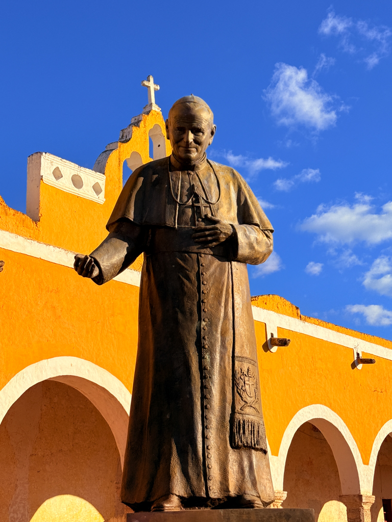 Izamal na poti v Río Lagartos, kjer ob kavici na balkončku s sončkom v hrbet pišem tale članek. Izamal je rumeno mesto, vredno ogleda. Na glavnem trgu, če še do danes nisi poizkusil Marqueritas – pred krarkim sem objavil video o tem, je čas da poizkusiš. Kot ena palačinka, polnjena s sirom, nutelo in jagodami. Njami